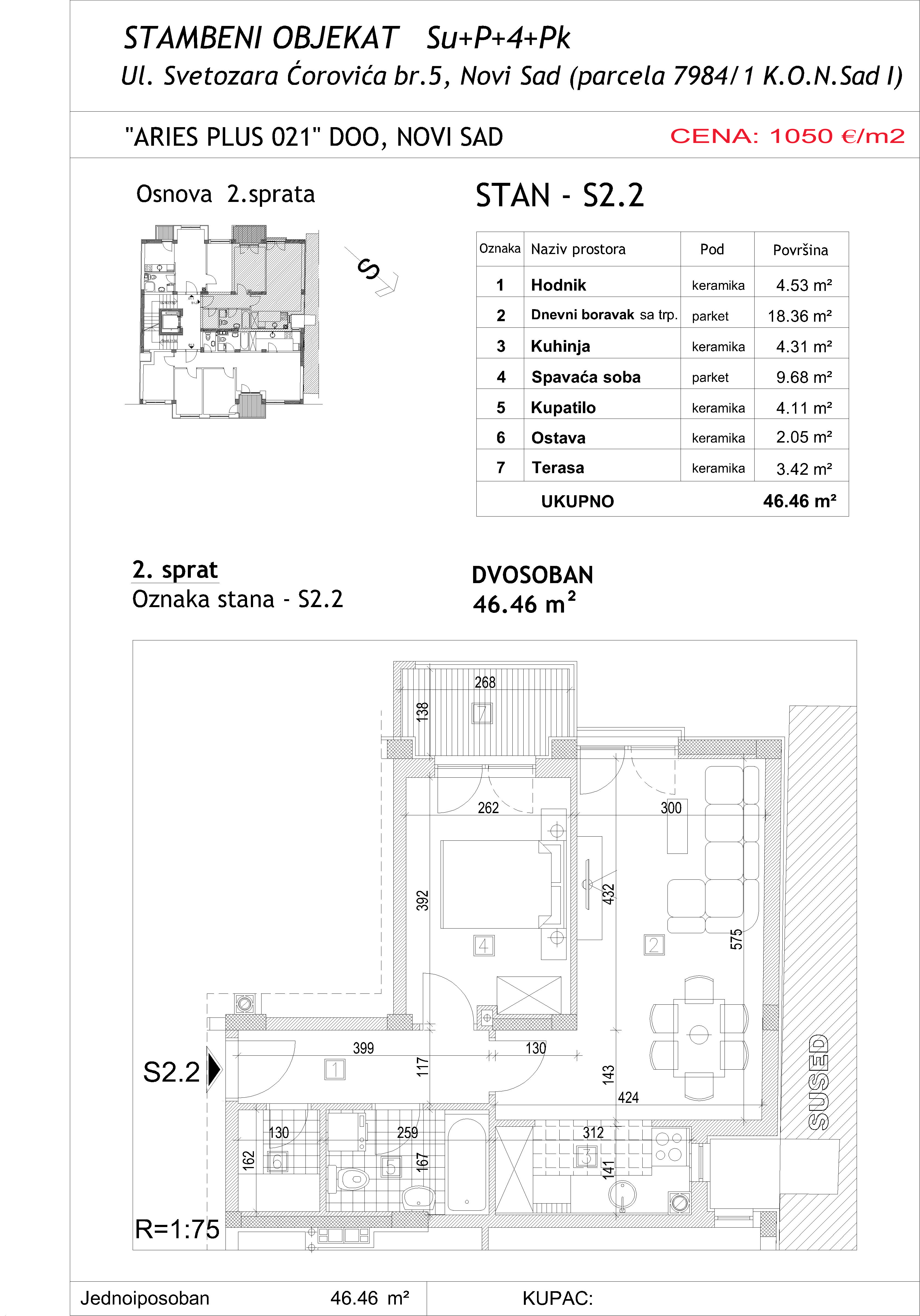 2. SPRAT: Na 2. Spratu su projektovane tri stambene jedinice različite strukture