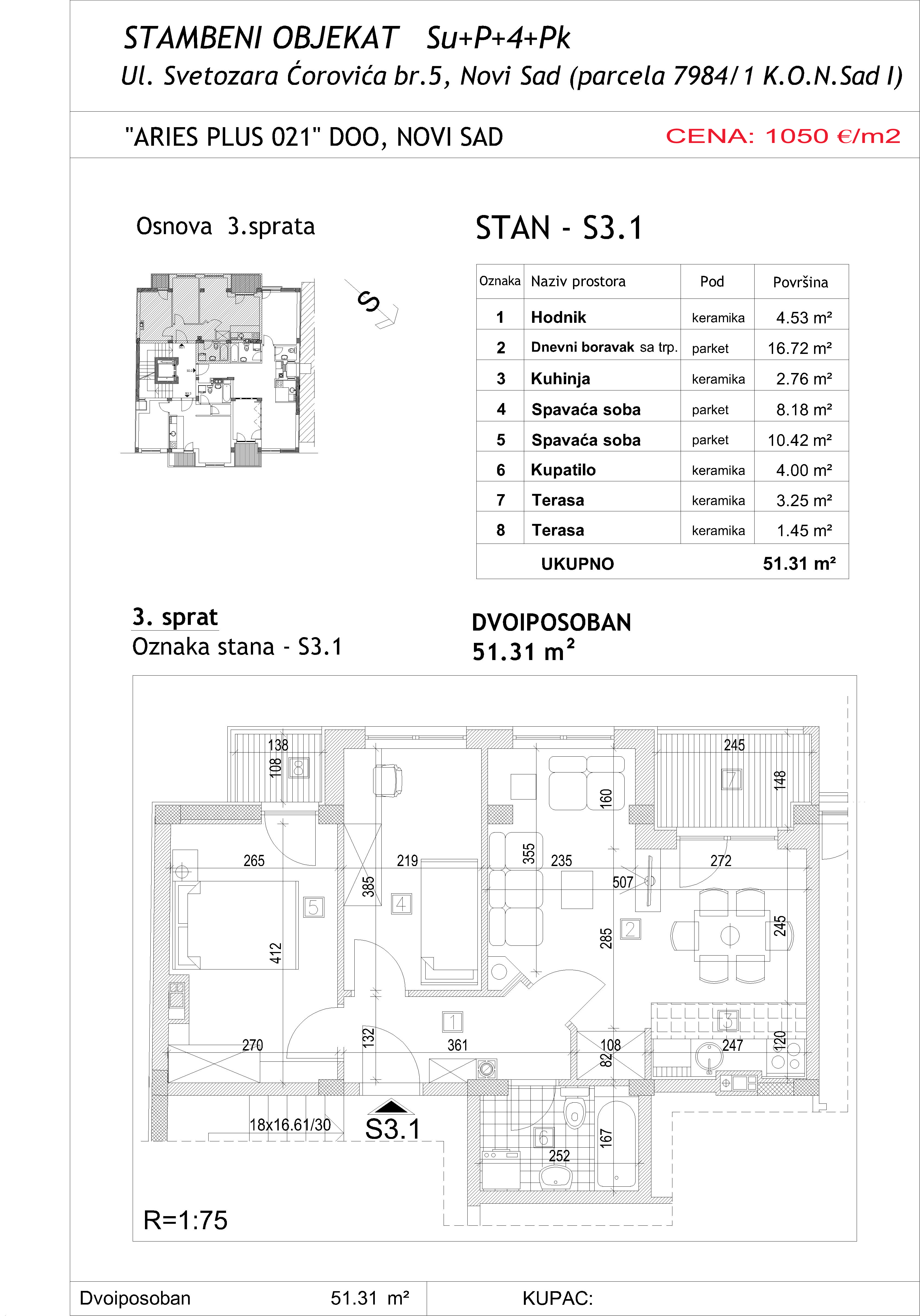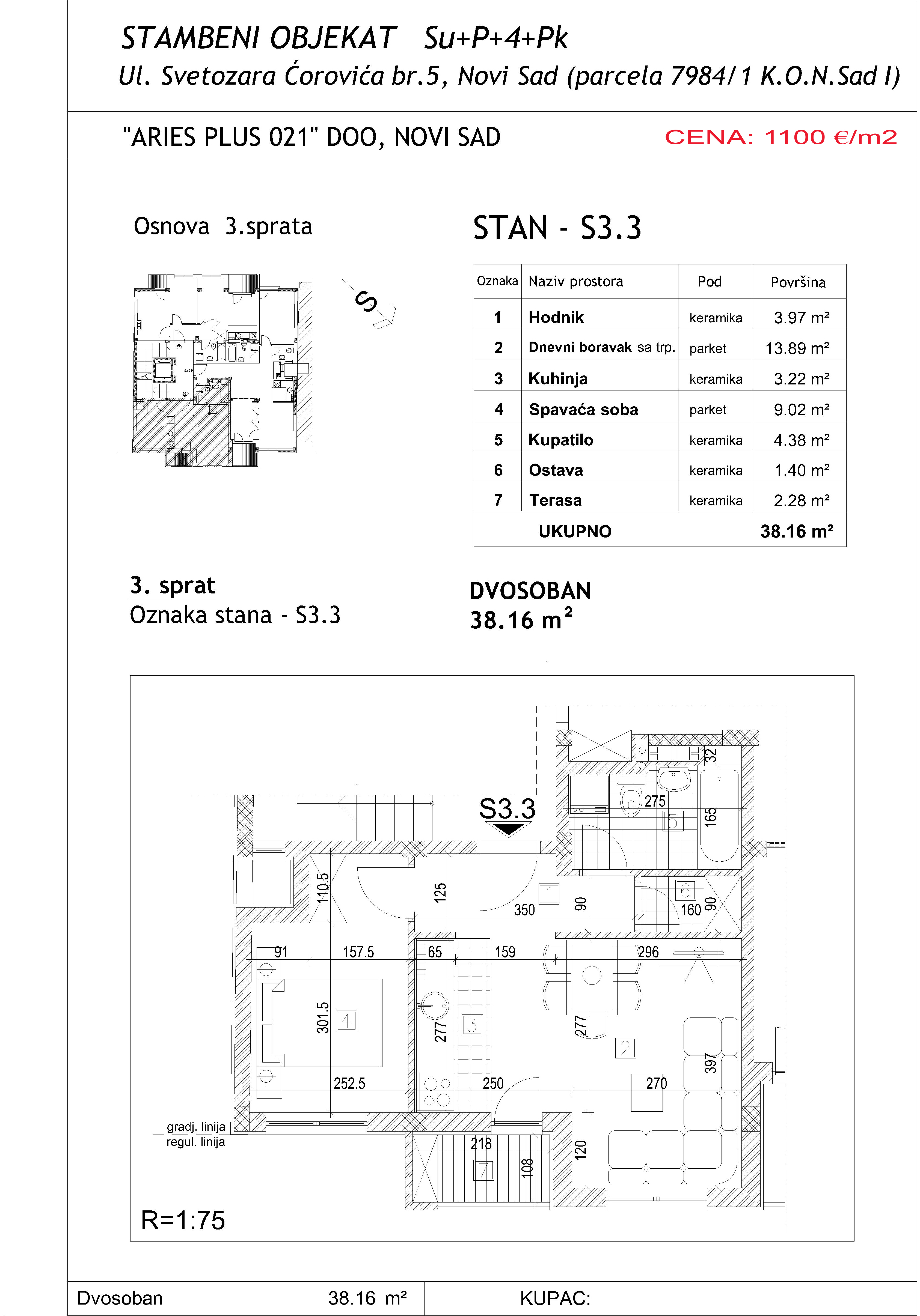 3.SPRAT : Na 3. Spratu su projektovane takođe tri stambene jedinice različite strukture